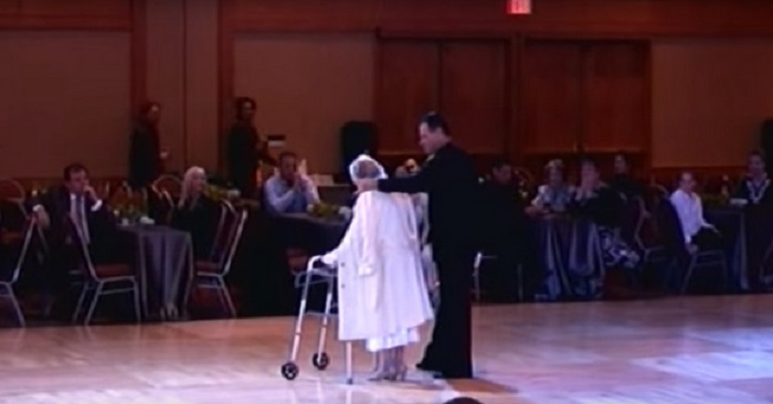 Kvinnan i detta klipp som heter Mathilda Klein och är 94 år gammal. Inledningsvis var jag lite skeptisk till vad hon ska göra på dansgolvet . Hon kommer att behöva stödja sig på sin partner, den betydande yngre Danny Maloney och hennes rullator .