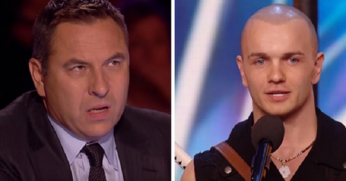 När Alex Magala kommer upp på scenen i Britain Got Talent, så ser domarna att han har ett svärd på ryggen.